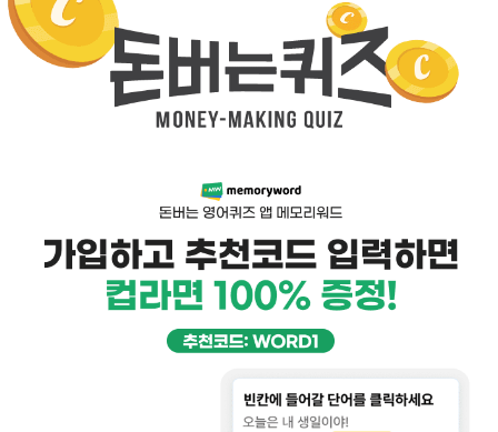 메모리워드는 잠금화면에서 OOOO 퀴즈 풀고 돈버는 앱이에요