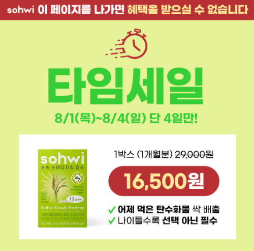 단4일 1+1 역대최저가후기 2,400개! 78만포 전량완판! 소휘 소화효소는 선택 아닌 필수! 수량소진시 조기종료! 어제 먹은 야식 탄수화물 죄책감 싹 분해! 소휘 효소는 OOO의 식습관에 맞추어 탄수화물 분해효소의 활성도에 집중하고, 단백질의 분해 효소의 균형을 맞추었습니다. 식후 1포 습관으로 속편한 하루 되세요! 여기서 OOO은?